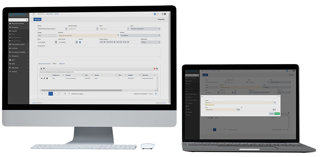 Definición de tareas y subtareas asociadas. Al igual que con los proyectos, la definición de tareas es muy flexible, es posible crear una tarea introduciendo únicamente tres datos, aunque el nivel de detalle y configuración, editable en cualquier momento, es mucho mayor.