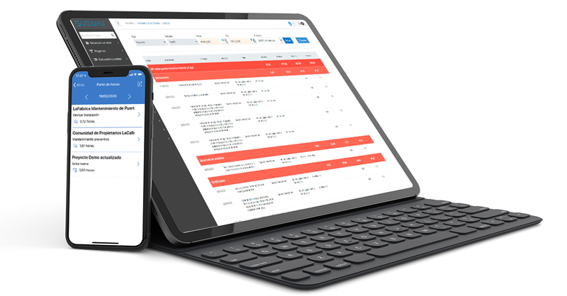 Con los partes horarios se registra la actividad de trabajo de los empleados. Cada empleado abre un parte de trabajo mensual donde imputa las tareas y las horas dedicadas a cada una de ellas. La elaboración de partes horarios está disponible en la aplicación web y en la app móvil. La app móvil da la posibilidad de contar el tiempo de forma automática para generar líneas del parte mediante dos clicks, un click para iniciar una tarea y otro tras terminarla, quedando registrada la línea del parte de trabajo automáticamente con el proyecto, tarea seleccionados y el tiempo entre los dos click.