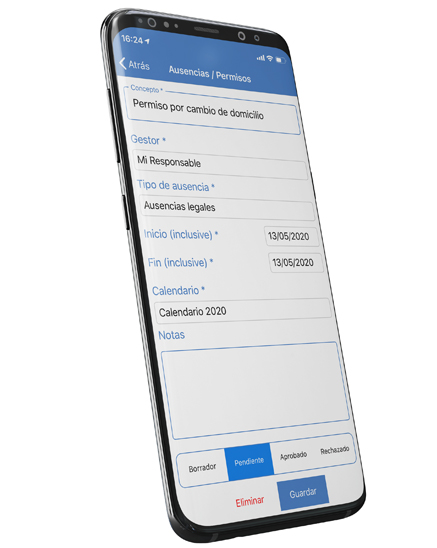 Solicitud de ausencias desde la app móvil con workflow de aprobación